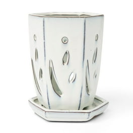 Mainstays 8 X 8 X 7 Round White Ceramic Plant Planter With Saucer Walmart Com