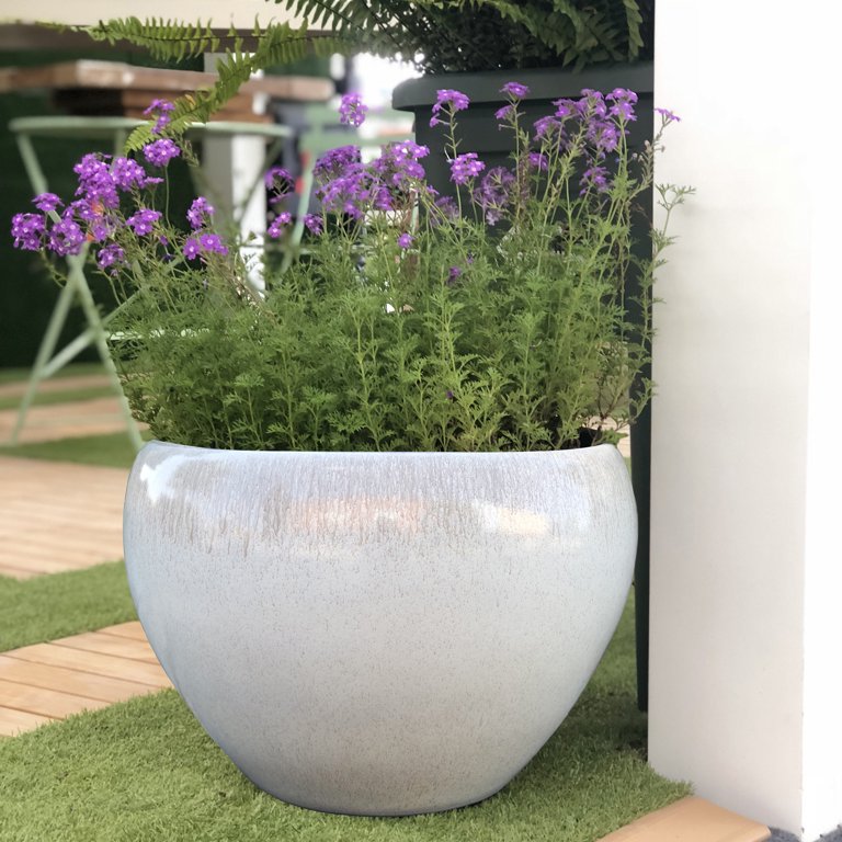 Plantara 17 In D Round Solid White Concrete Modern Planter Outdoor Plant Pots With Drainage Hole Plug For Garden Pa152c 8011 The Home Depot
